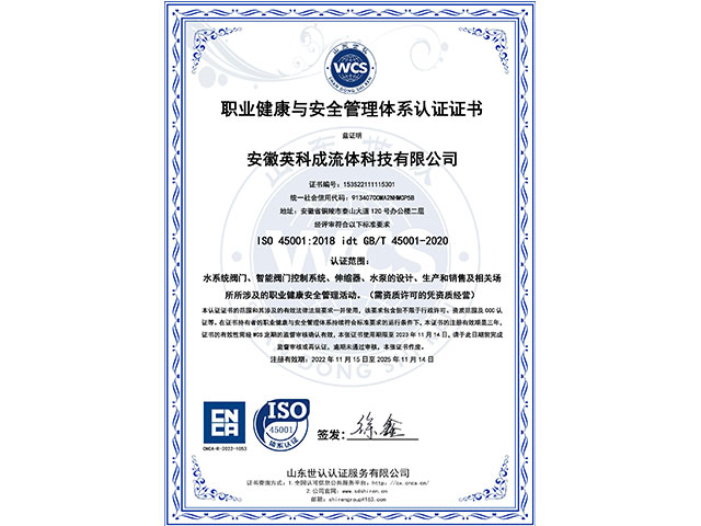 • 職業(yè)健康安全管理體系認(rèn)證證書(shū)